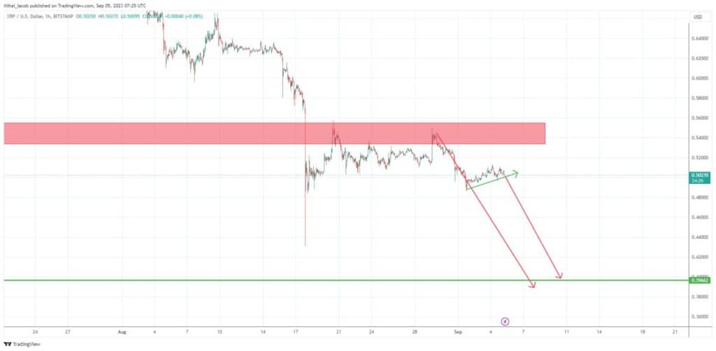 On my 21st of August XRP analysis, I said that after the drop-back under old resistance, which should have provided support, the coin is not looking good at all and the more likely scenario is a down continuation to 0.4 next support.
