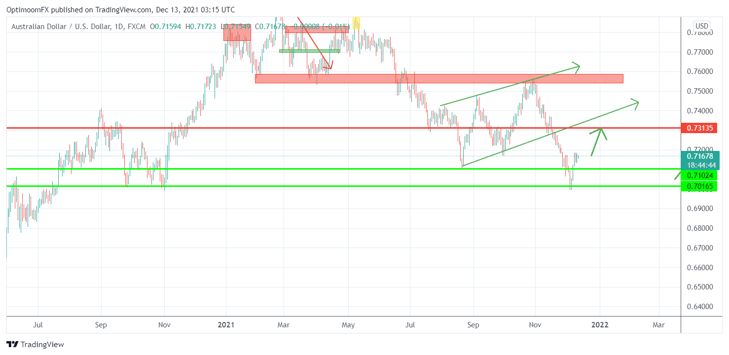 I’m bullish on this pair as long as 0.71 support holds and dips towards this zone should be bought.