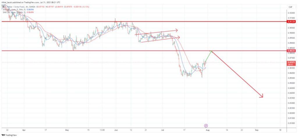 UsdChf is in a bearish trend for quite some time and recently broke under very important 0.88 zone support.